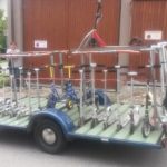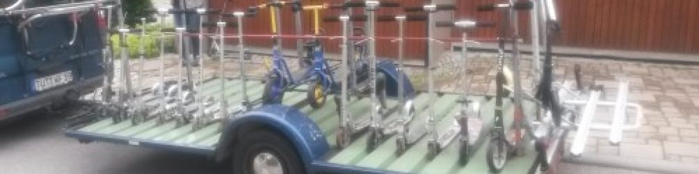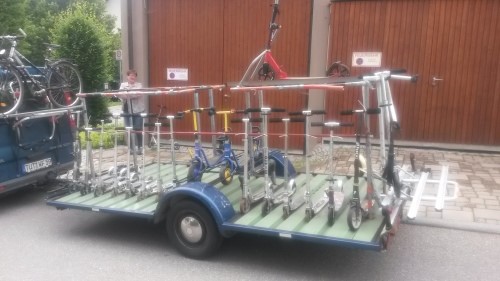 Diese verlädt er auf seinen Radanhänger und lädt unsalle, jung und alt, zur kleinen Gaudi-Rollertour ein.